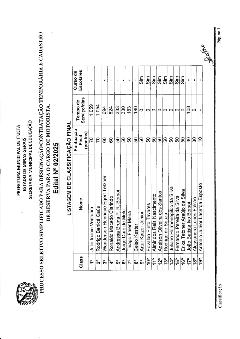 Página inicial > Últimas Notícias > Resultado Final - Edital de Seleção Pública Simplificada nº 02/2025 (Motorista)