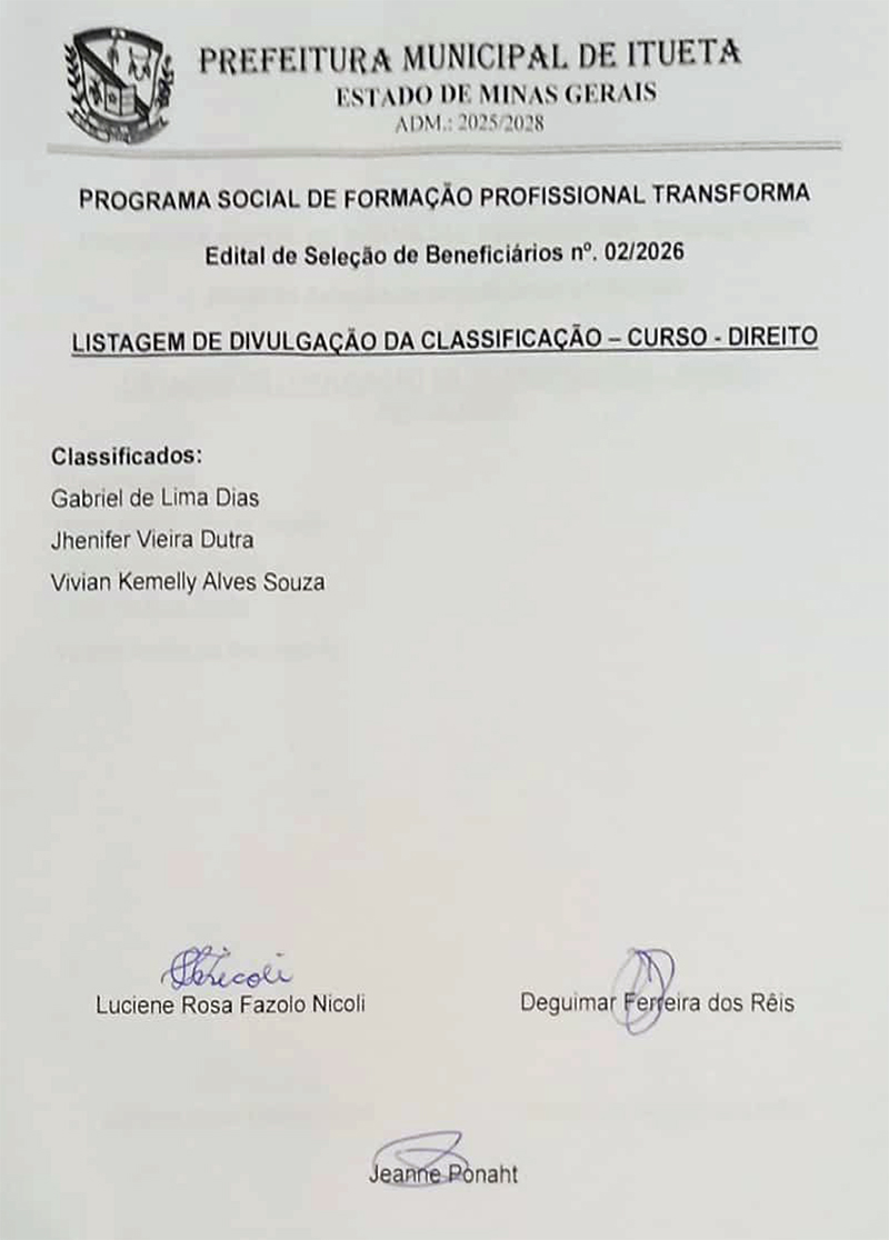 Classificação - Programa Social de Formação Profissional Transforma - Edital de Seleção de Beneficiários nº 02/2026