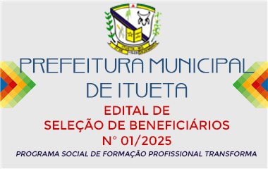 PROGRAMA SOCIAL DE FORMAÇÃO PROFISSIONAL TRANSFORMA Errata 002 - Edital de Seleção de Beneficiários nº. 01/2025  A Prefeitura Municipal de Itueta/MG, por meio da Secretaria...